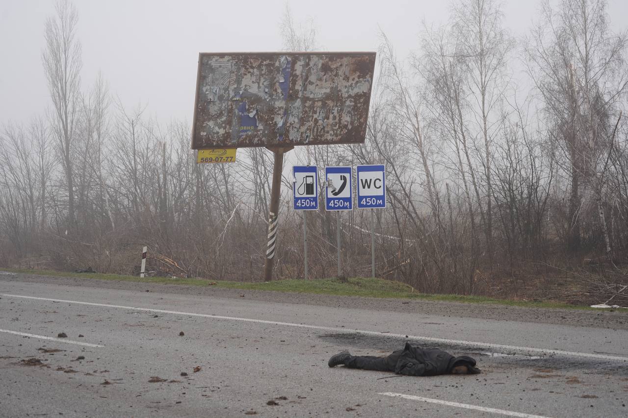 Людей, которые пытались выехать из Житомира в Киев, расстреливали и сжигали прямо на трассе. Фотографии убитых опубликовали украинские СМИ. Информацию The Insider подтвердил глава поселка Дмитровка Тарас Дидич. По его словам, российские военные убивали людей в 25 километрах от украинской столицы на границе сел Мила и Мрия по направлению из Житомира в Киев, где справа находится отельно-ресторанный комплекс «Бабушкин сад», а слева — заправки. Это подтверждается сверкой фотографий, сделанных после убийств, и фото этой местности на Google-картах. Дидич сообщил The Insider, что обнаружено не менее 29 тел.