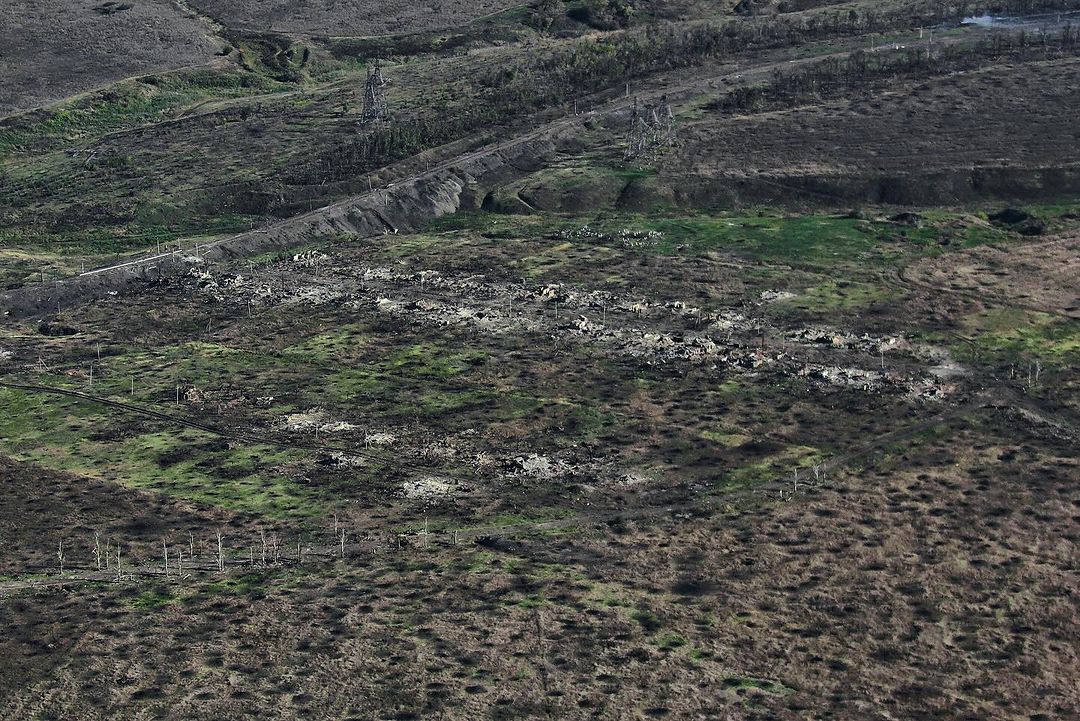 На них видны появившиеся выжженные участки земли к востоку и юго-востоку от Новопрокоповки, что соответствует недавним сообщениями об атаках украинских сил в окрестностях этого населенного пункта.