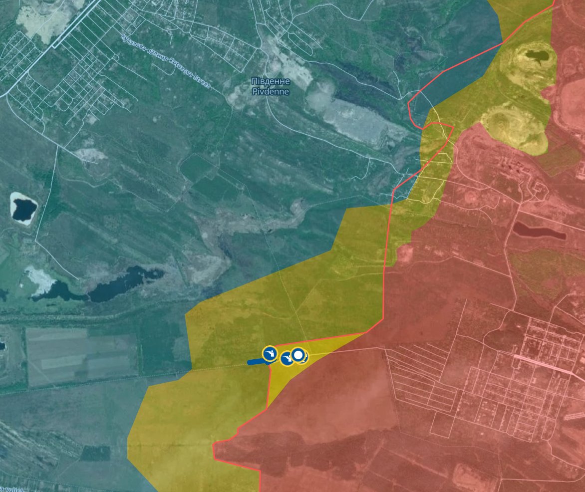 В районе Торецка ВСУ перешли линию соприкосновения, существовавшую до началы полномасштабной войны в феврале 2022 года. Аналитик под ником Andrew Perpetua считает, что украинские войска продвинулись южнее Пивденного (до 2016 года — Ленинское) и заняли там линию траншей.