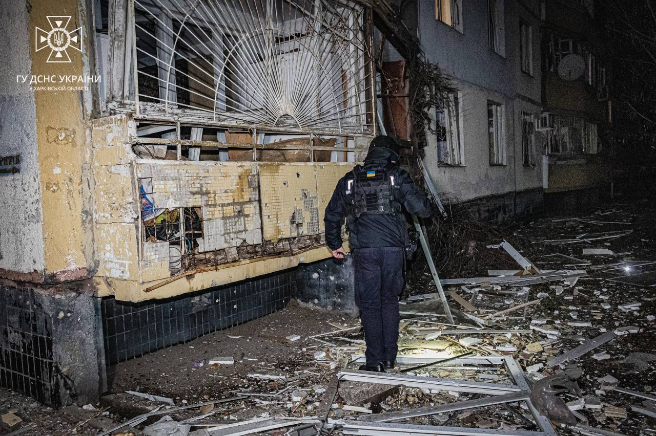 В результате атаки беспилотниками по жилым кварталам Харькова, по данным ГСЧС, произошло несколько пожаров: горели крыша частного жилого дома, гаражи, два легковых автомобиля, крыша двухэтажного административного здания. Кроме того, повреждены расположенные рядом многоэтажные жилые дома и торговое заведение. По предварительным данным, три человека получили травмы.