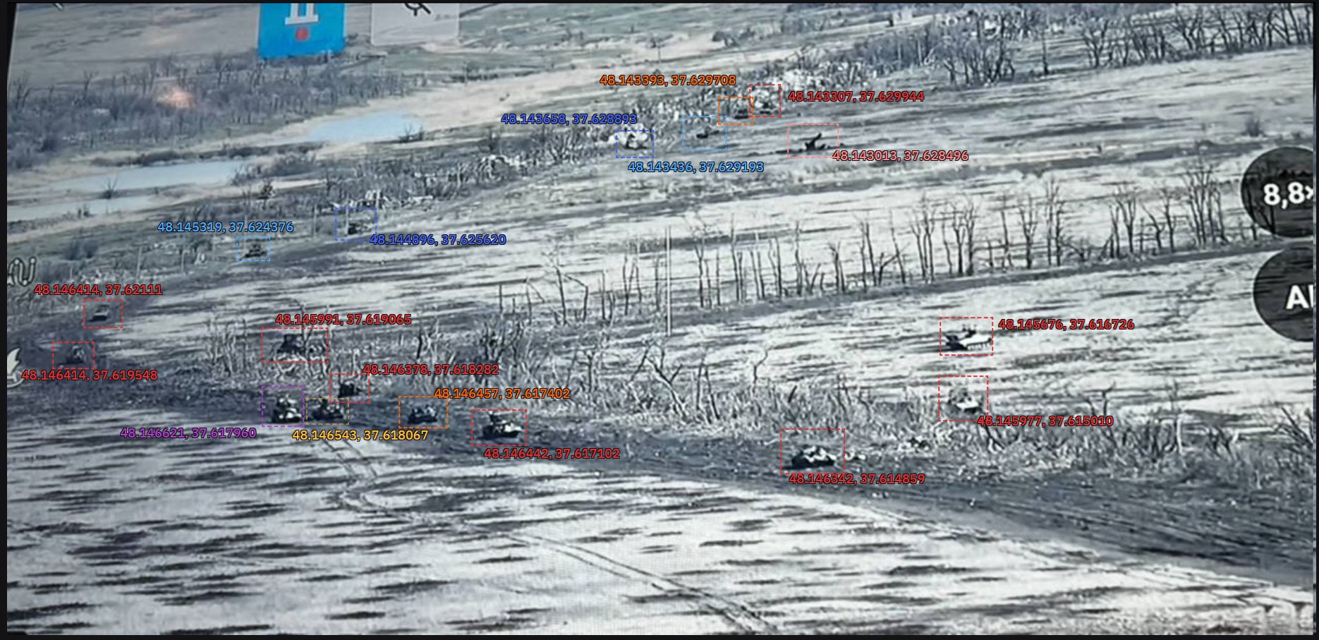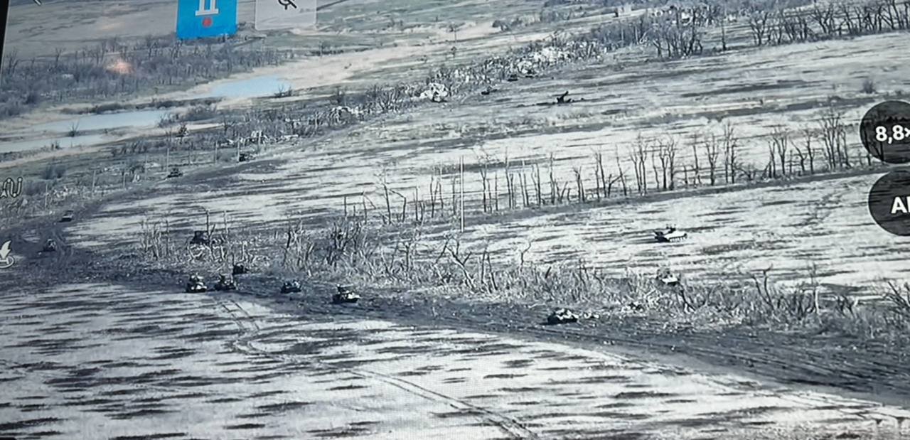 Kriegsforscher отмечает, что это крупнейшая атака с применением бронетехники с начала войны. На фото, сделанном с помощью дрона, можно видеть также и потерянные украинские БМП.