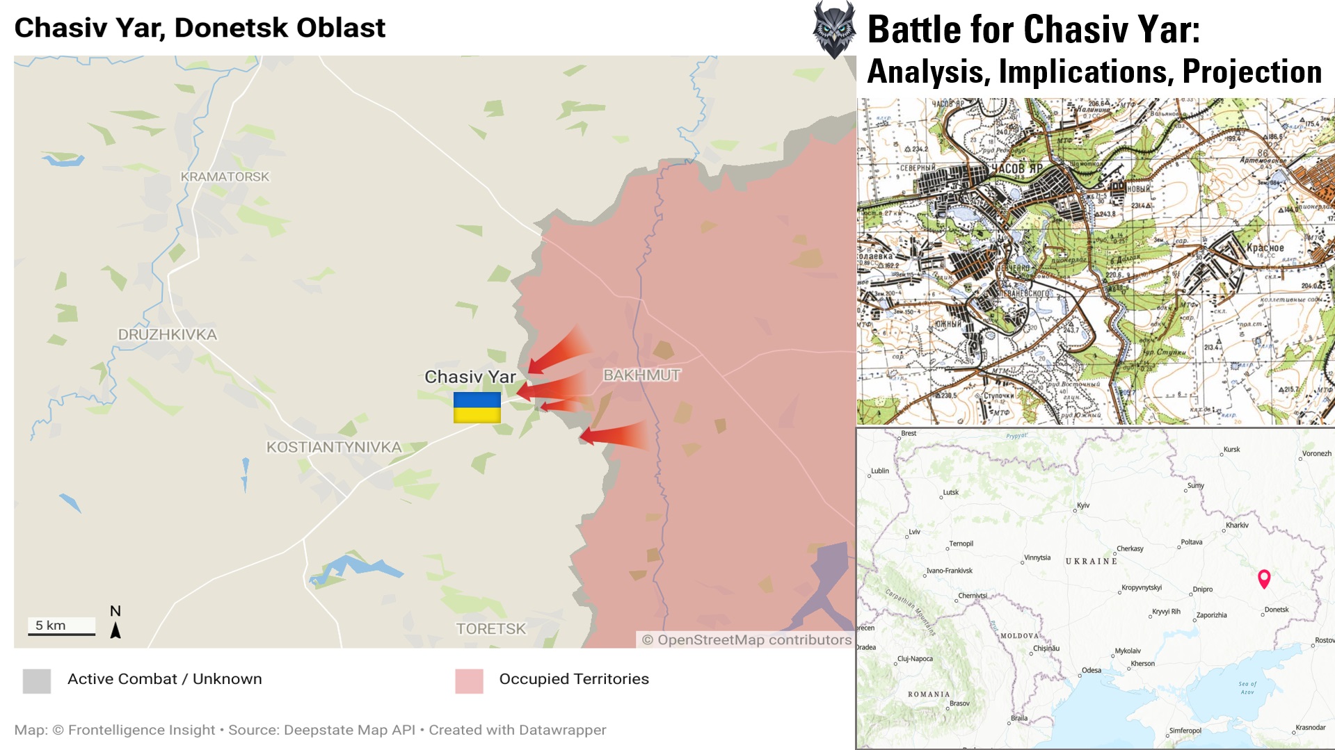 Tatarigami_UAсчитает, что битва за Часов Яр станет настоящим испытанием для обеих сторон. Для Украины потеря города будет иметь серьезные последствия с точки зрения устойчивости обороны на всем востоке страны. В то же время неудача Кремля поставит под вопрос способность достичь одной из главных целей войны — полного захвата Донбасса. У Часова Яра выгодное расположение — на высотах. Подходы к городу с востока также прикрывает канал Северский Донец — Донбасс, а это серьезная преграда для техники, отсюда следует исключительно высокое значение пехоты.