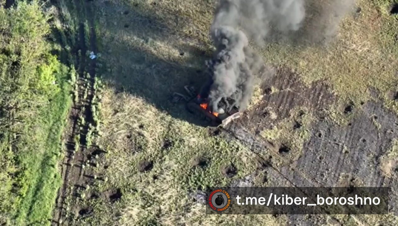 Канал «Війна в Україні. Втрати техніки.» публикует кадры уничтожения FPV-дронами российского танка Т-62 в довольно специфической конфигурации: танк не имеет башни, но снабжен минным тралом, то есть фактически переделан в боевую машину разминирования.
