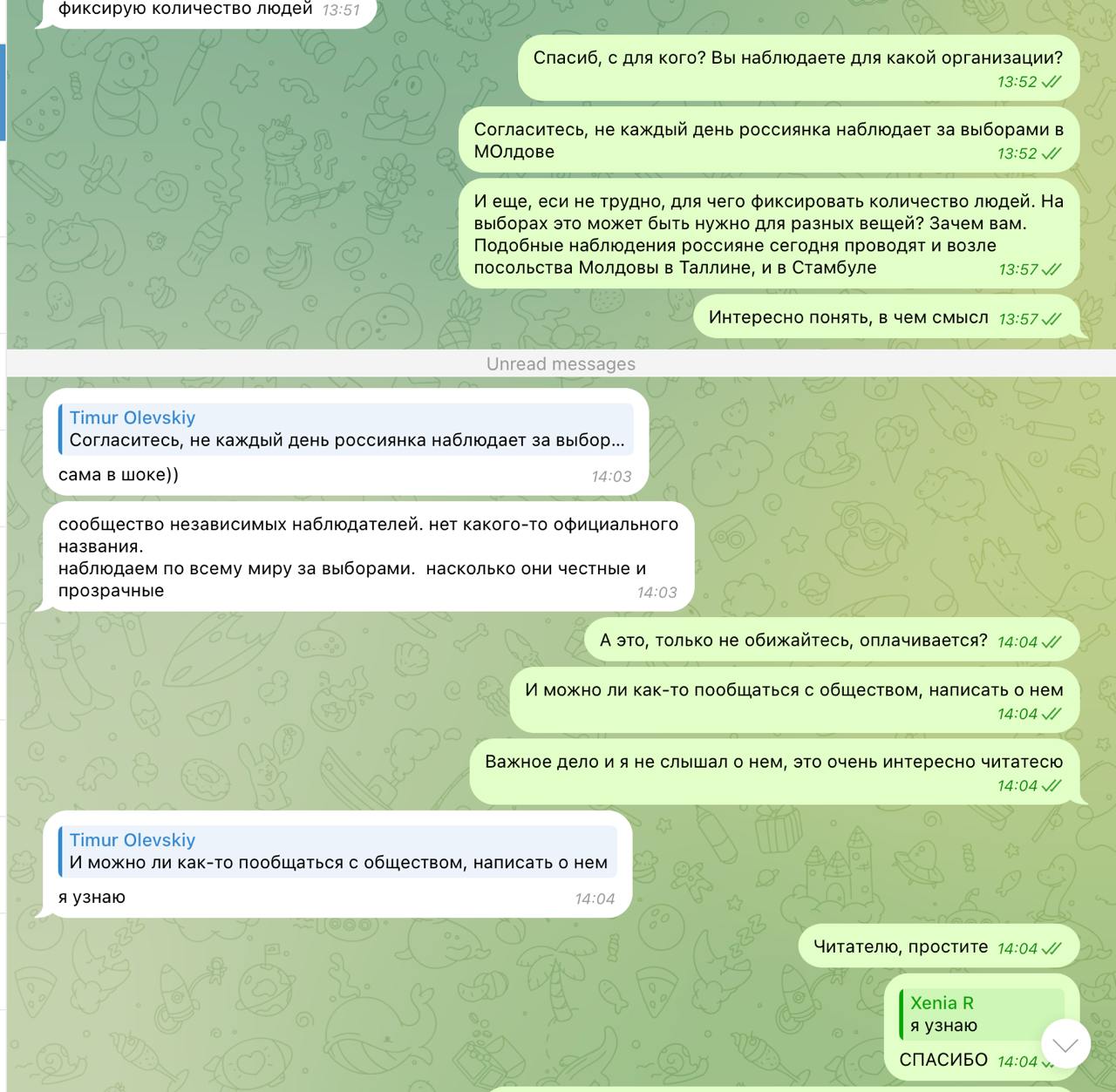 «Присутствие этих лиц может указывать на попытку запугивания избирателей, в том смысле, что информация может быть впоследствии использована для идентификации граждан, или же это сбор информации для проверки явки, поскольку в первом туре ходили слухи, что в диаспоре явка была не такой высокой», — отметил глава миссии наблюдения Promo-LEX Николай Панфил.