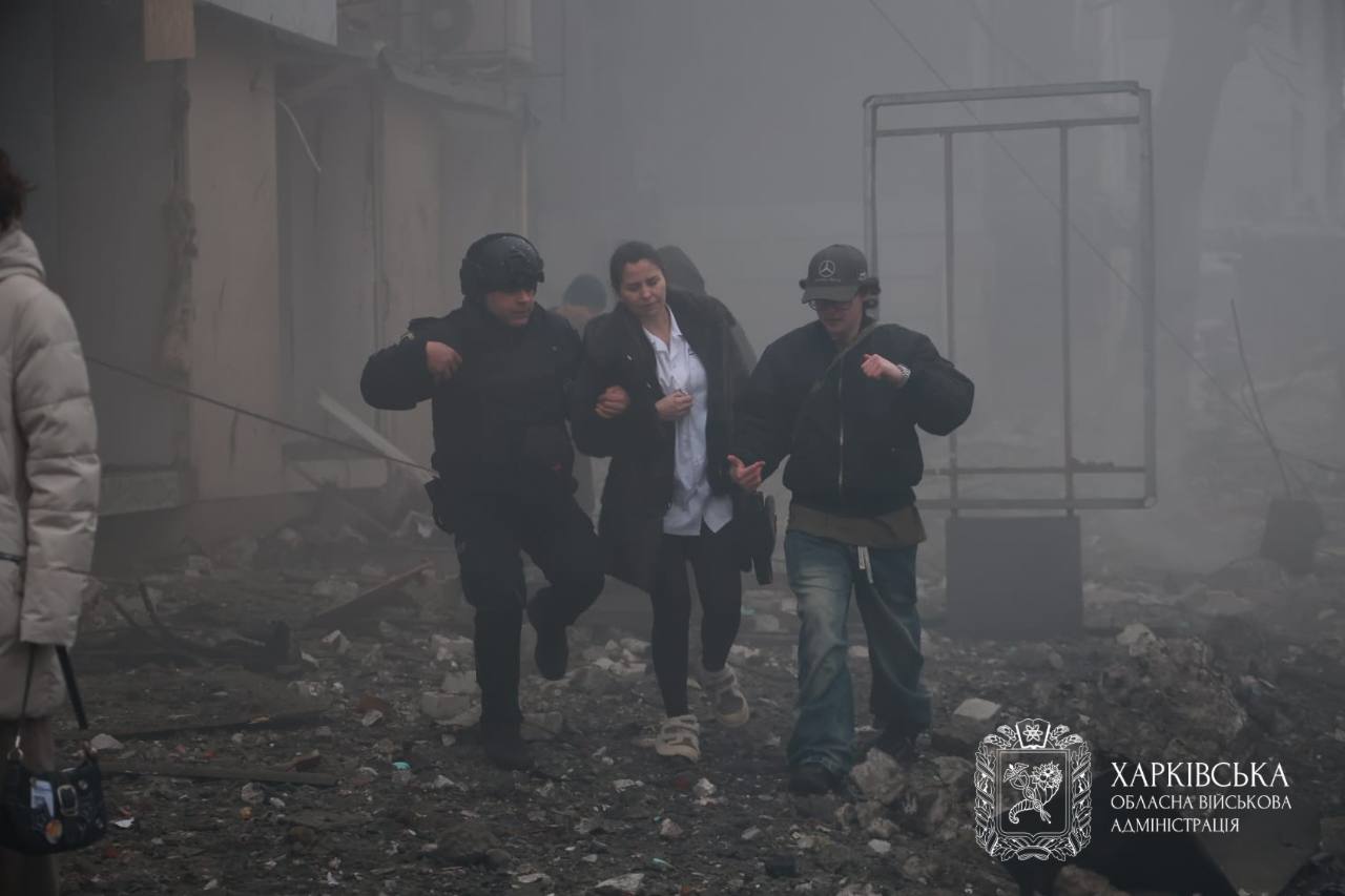 На фото ниже — последствия попадания по жилому пятиэтажному дому в центре Харькова. Предварительно, армия РФ нанесла два удара баллистическим оружием, пишет глава Харьковской ОВА Олег Синегубов.